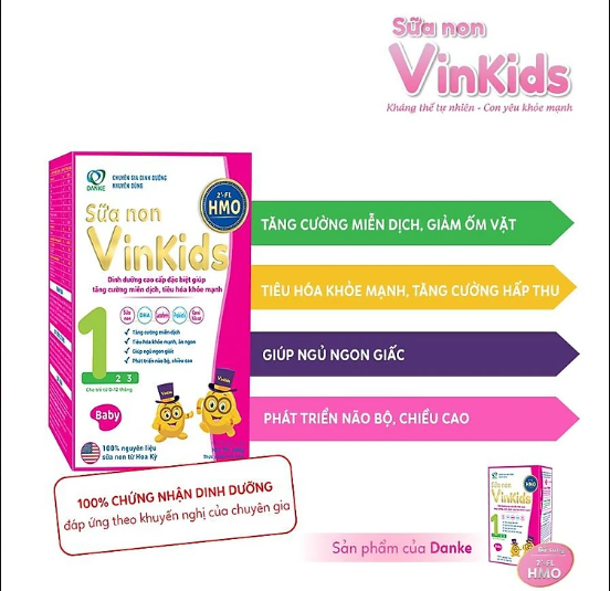 Sữa non Vinkids số 1 baby là sản phẩm bổ sung rất nhiều dinh dưỡng, được các chuyên gia hàng đầu của DANKE nghiên cứu và phát triển. Với các nguồn nguyên liệu chính từ Châu Âu và Hoa Kỳ, sữa non Vinkids cung cấp kháng thể tự nhiên IgG, 2’-FL HMO, hệ Synbiotics và các vitamin, khoáng chất giúp bé tăng cường miễn dịch và tiêu hoá khoẻ mạnh.