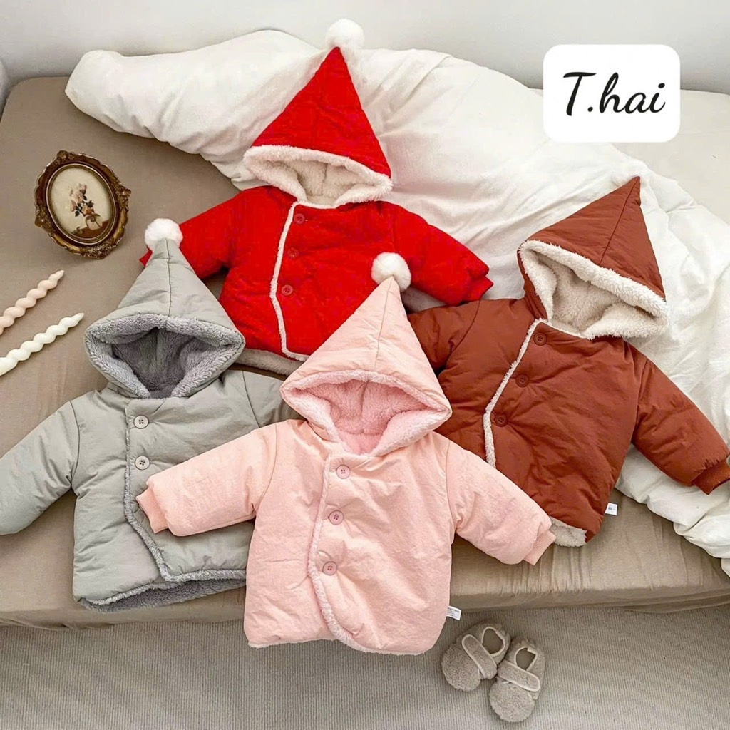 Áo khoác lông có mũ size nhí cho bé trai, gái