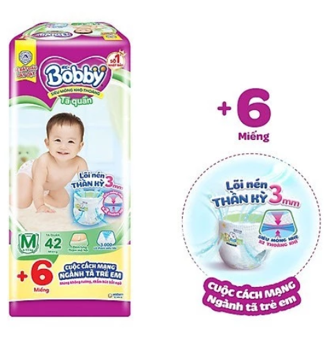 - Với công nghệ ép lõi đột phá từ Nhật Bản giúp tã quần Bobby: