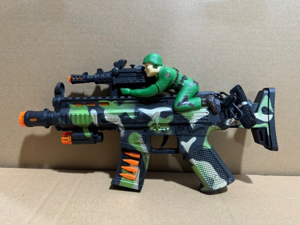 Súng đồ chơi chạy pin phát đèn nhạc cho bé trai làm anh hùng