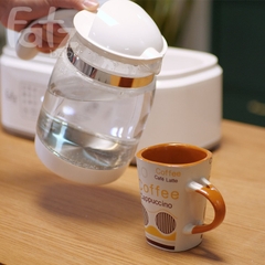 - Khi máy được cắm điện, nếu bình thủy tinh được lấy ra khỏi đế, máy sẽ hiển thị âm thanh cảnh báo ‘B’, màn hình LED hiển thị báo lỗi ’–’. Khi bình thủy tinh được đặt trở lại đế máy trong vòng 5 phút, máy sẽ hủy ‘–’, và trở lại hoạt động như chương trình đang cài đặt.