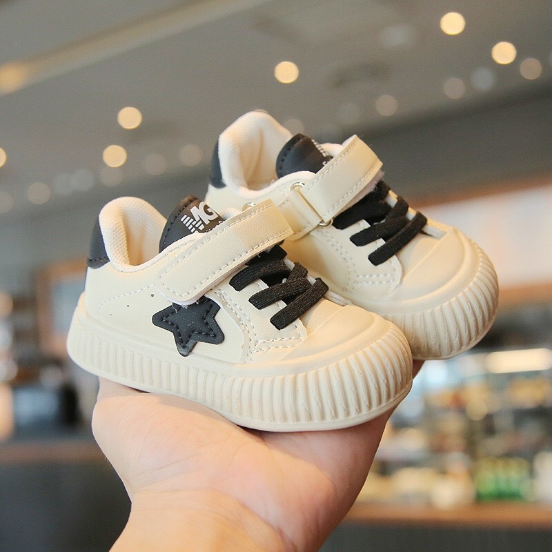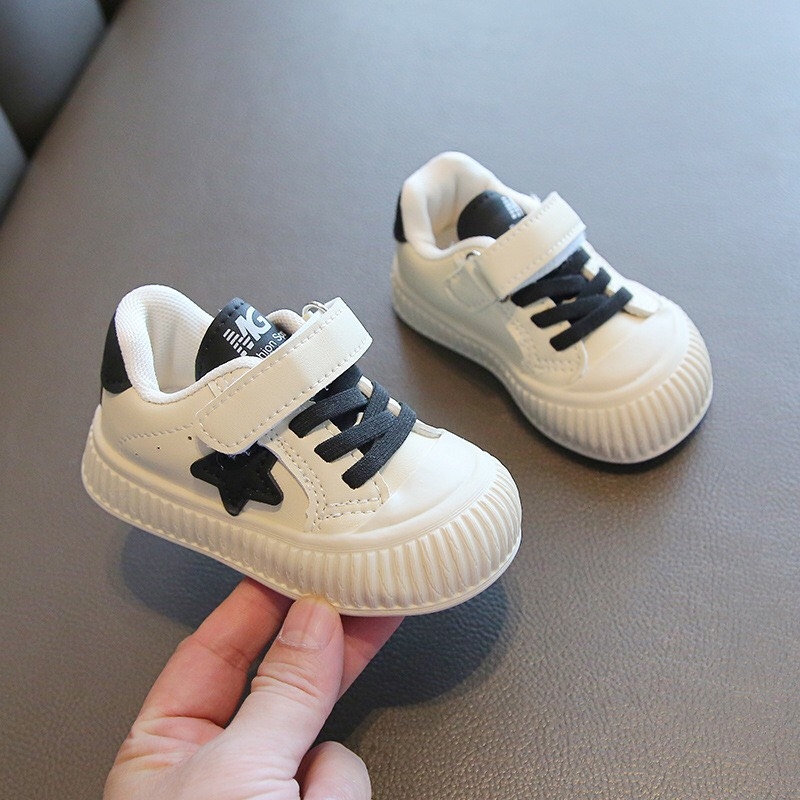 -Giày Trẻ Em Cổ Thấp Màu Trắng Quai Dán Đế Mềm Hàng Cao Cấp Hình Ngôi Sao Đục Lỗ Thoáng Khí Cho Bé