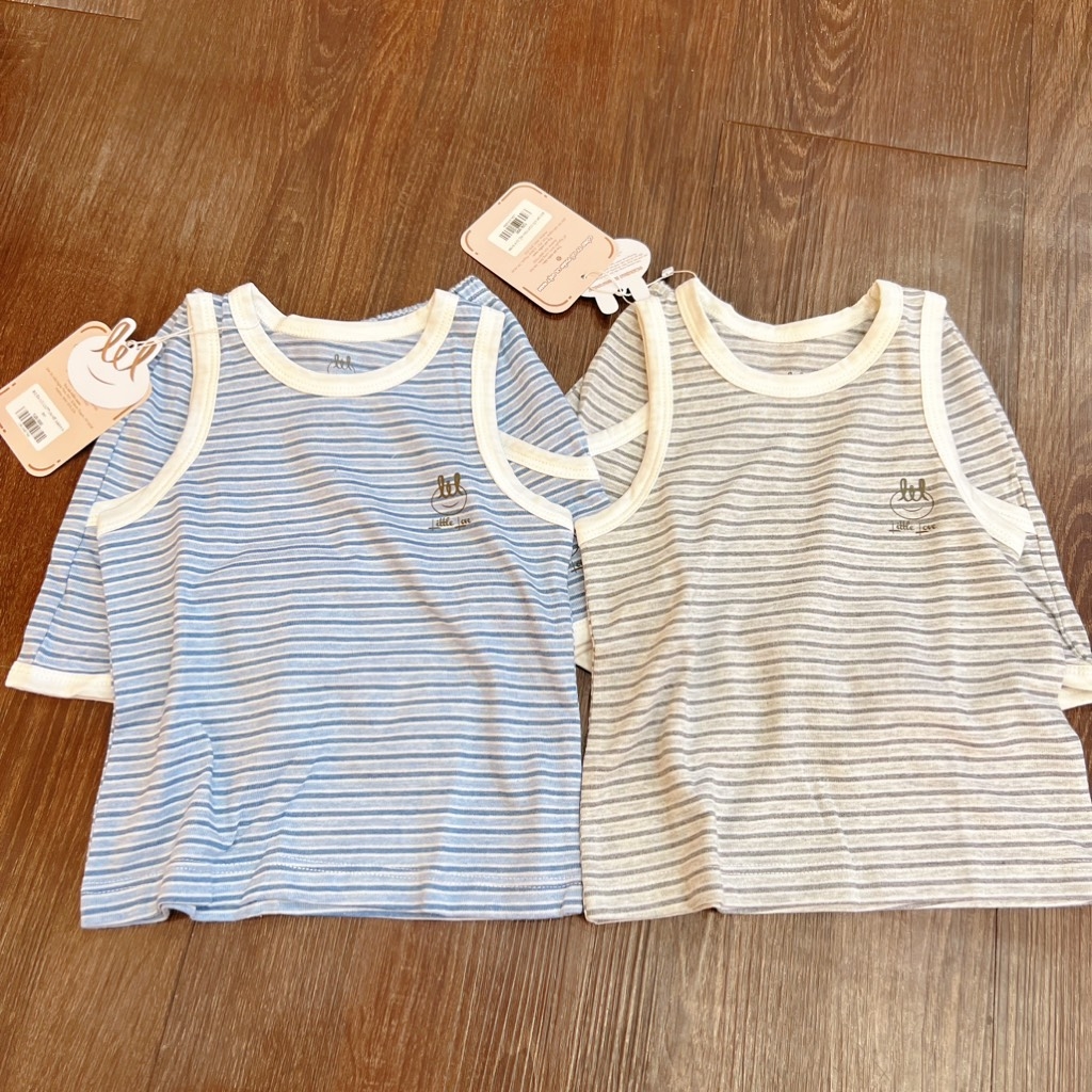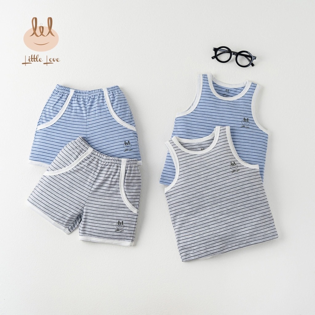 Little love - Bộ cộc tay 3 lỗ bé trai cotton 2 màu kẻ xanh + xám