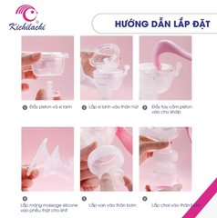 - Đặt đầu ti vào tâm phễu, (lưu ý không đặt quá chặt tránh làm đau bầu ti mẹ, và chặt quá khiến sữa khó ra).