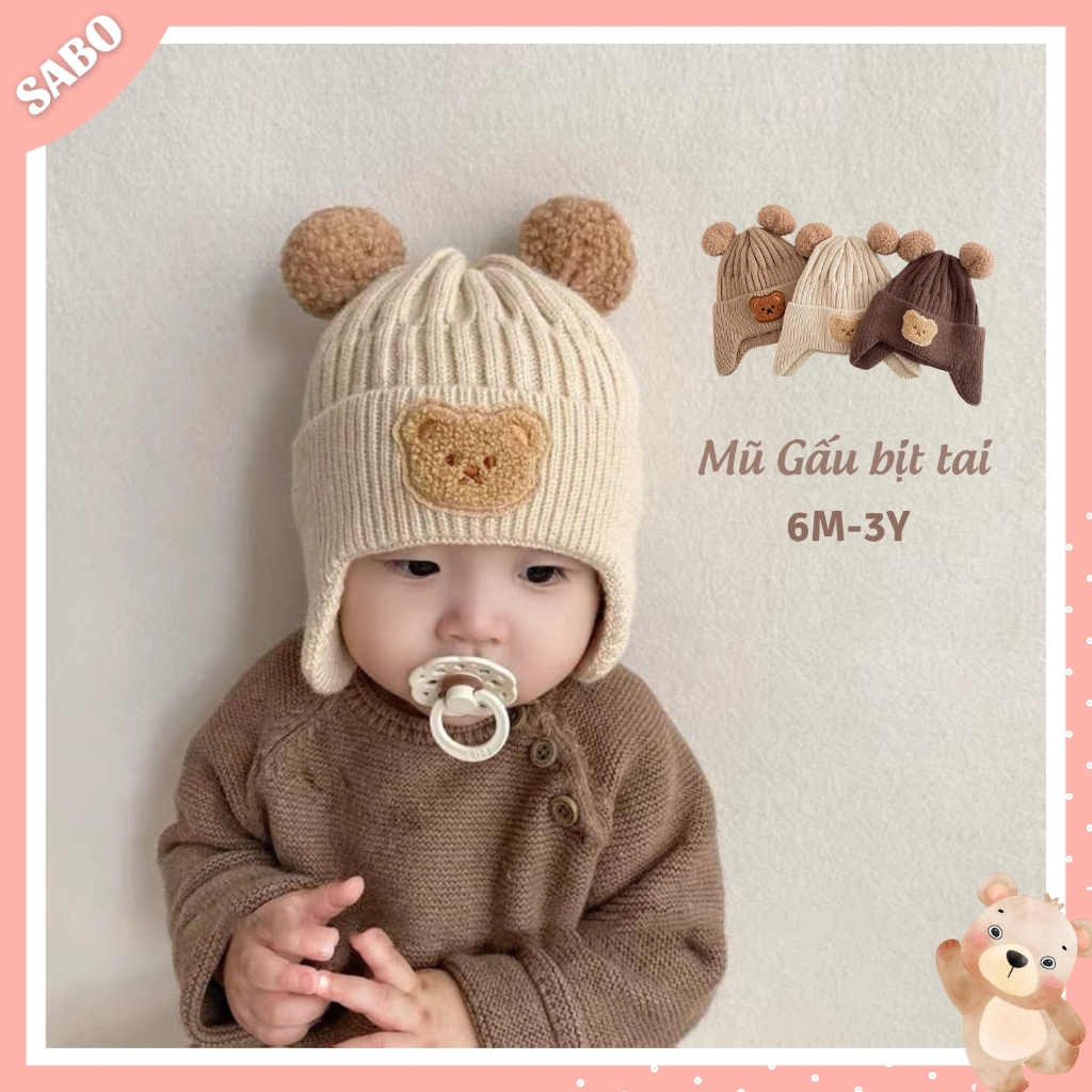 Mũ len dáng tròn ôm trọn đầu, thích hợp để đeo khi đi đường, mũ len còn là phụ kiện thời trang kết hợp để các bé sành điệu và thời trang hơn Mũ giữ ấm đầu, tai thóp của bé Mũ đính hình gấu tai bông đáng yêu, là mẫu mũ vô cùng đáng yêu và hottrend.