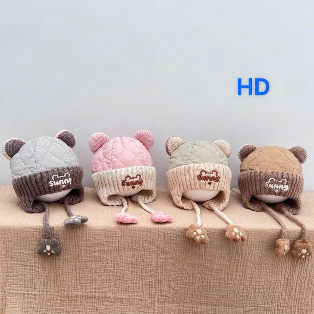 Mũ len Sunny phối có dây buộc cho bé đủ màu