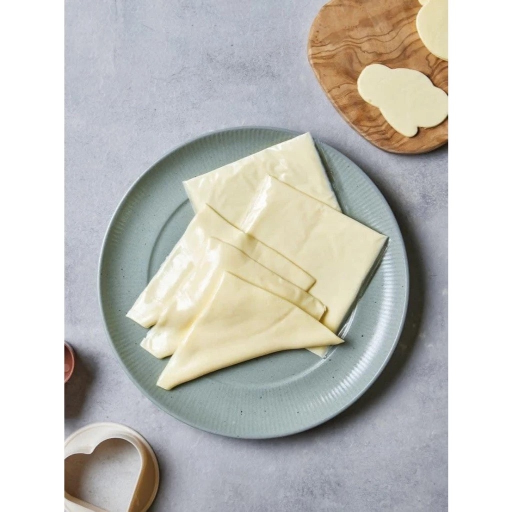 Phomai mềm từng miếng dẹt ăn trực tiếp, không bị bết dính hay dễ nghẹn như phomai cục.
