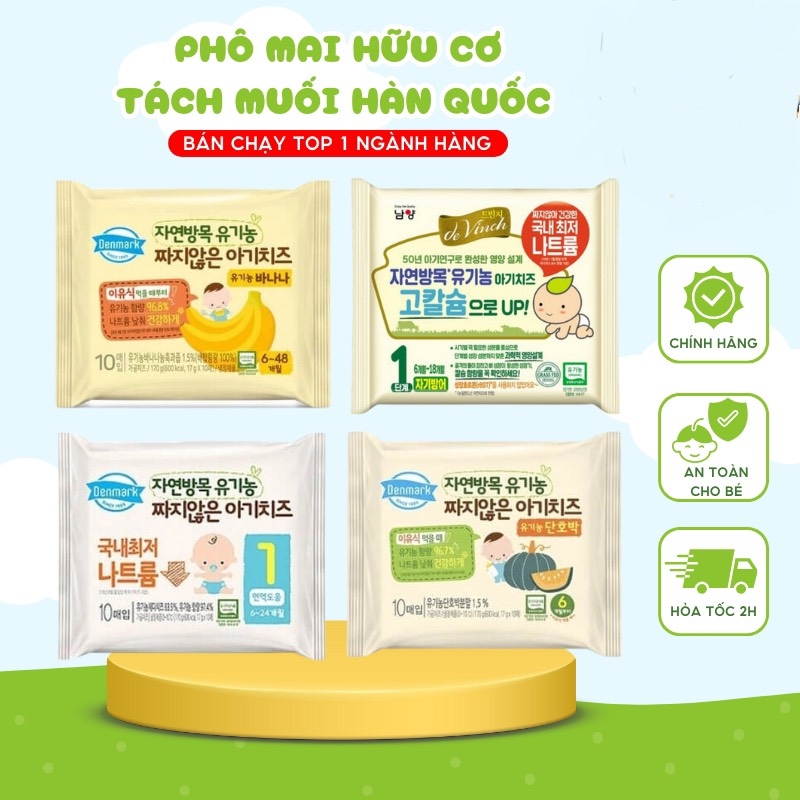 Phô Mai Tách Muối Cho Bé Ăn Dặm- Phomai Hữu Cơ Hàn Quốc Denmark