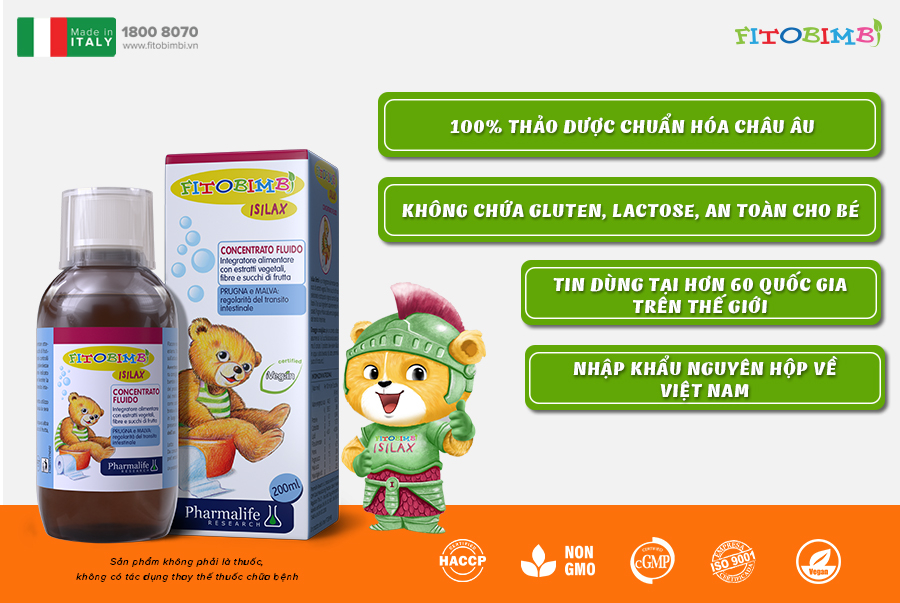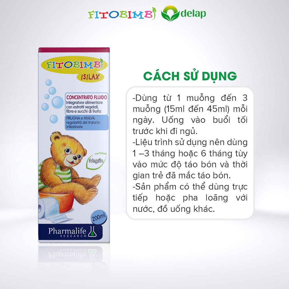- Tên sản phẩm: Siro FITOBIMBI ISILAX Hỗ Trợ Giảm Táo Bón 6 Trong 1 Cho Trẻ