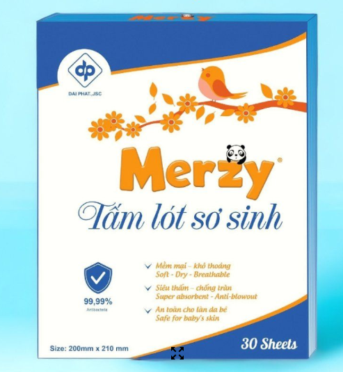 Combo 6 gói miếng lót sơ sinh Merzy mềm mại, tấm lót chống thấm cho bé 30 miếng size 220mm x210mm