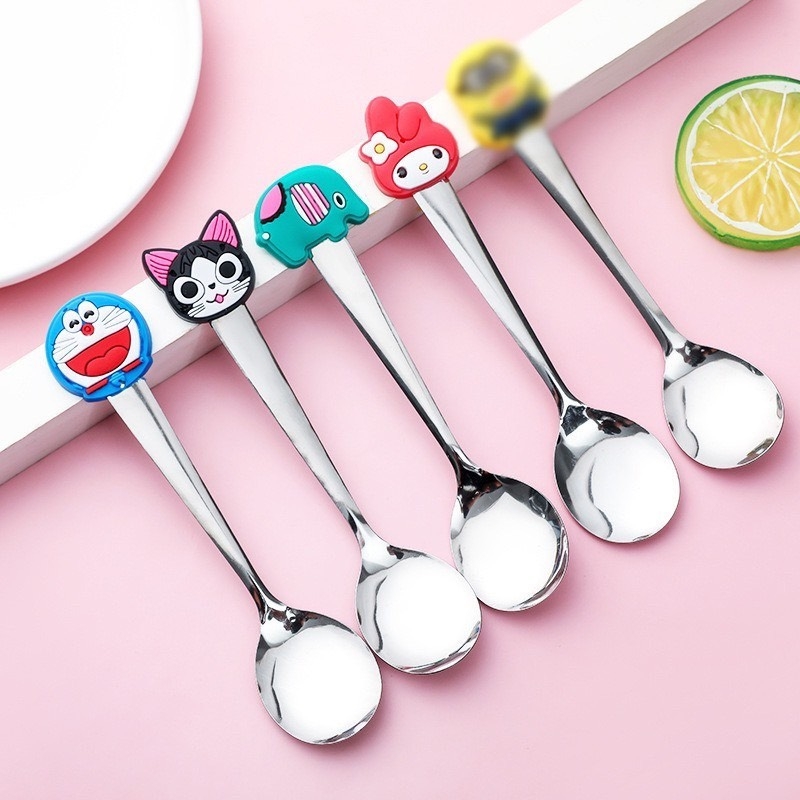 Thìa inox gắn sticker động vật xinh xắn giúp các bé cảm giác ăn ngon hơn có nhiều hình để các bé lựa chọn