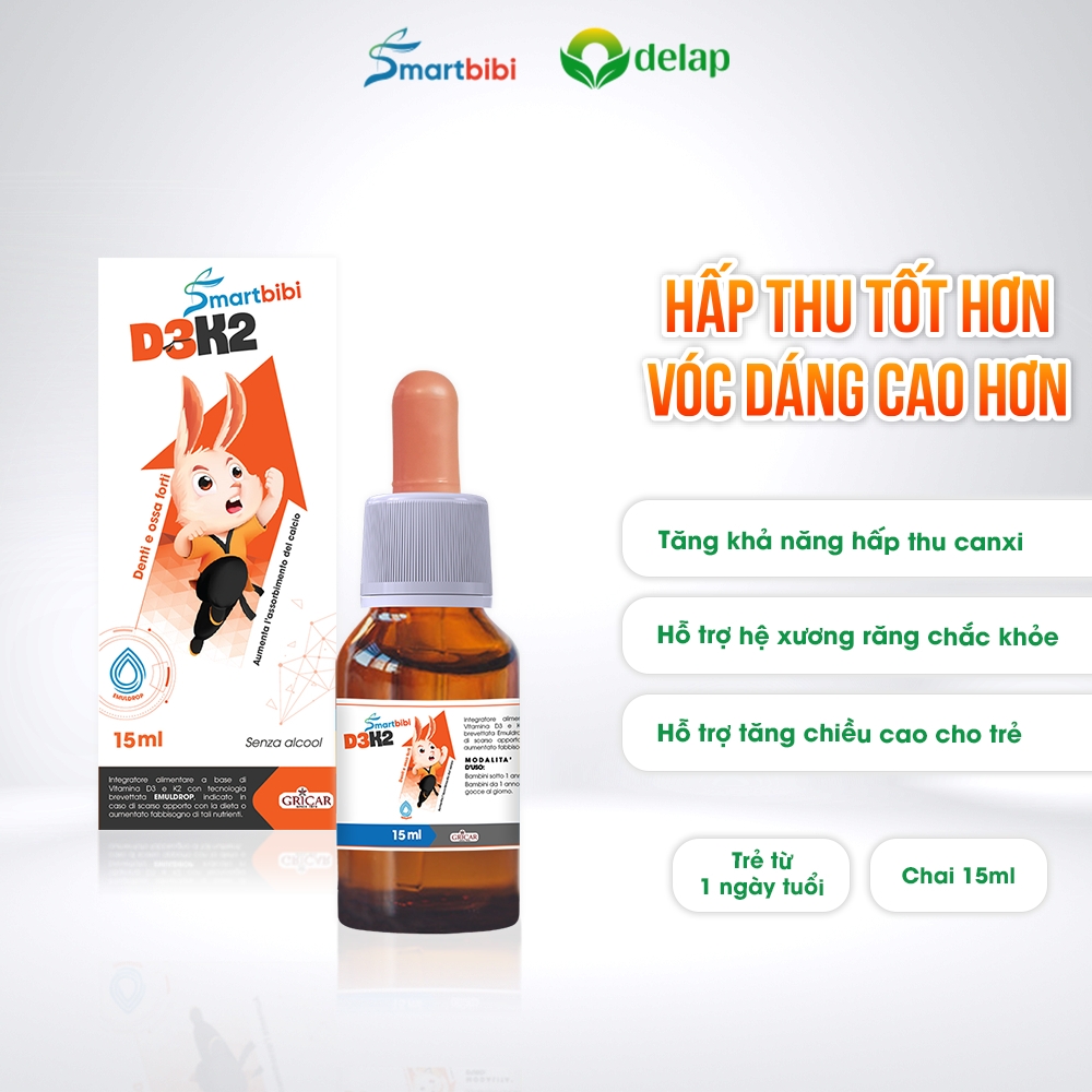 Vitamin D3-K2 Smartbibi 15ml - Hấp thu tốt hơn, dáng vóc cao hơn