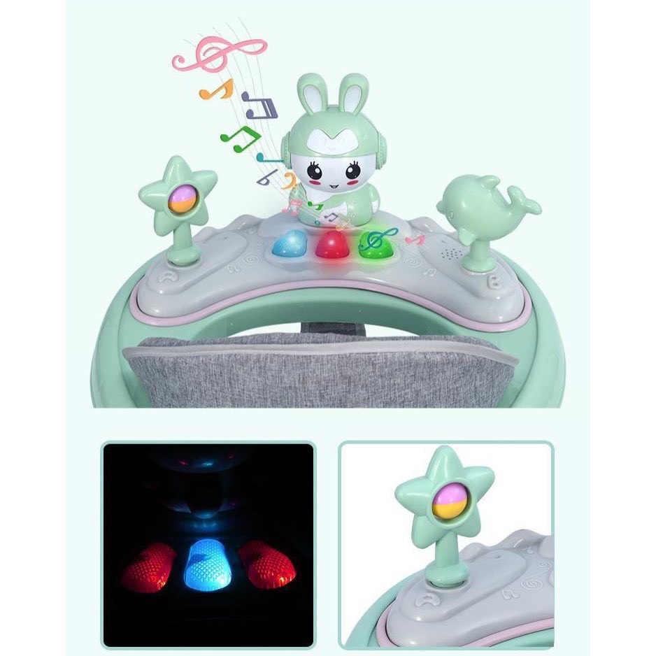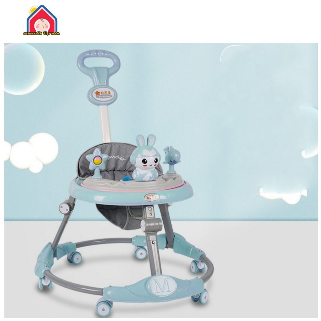 Xe tập đi cao cấp cho bé, xe tròn tập đi, khung xe kim loại chắc chắn - có kèm nhạc, đèn tay đẩy, bàn ăn dặm hình thỏ mẫu mới nhất