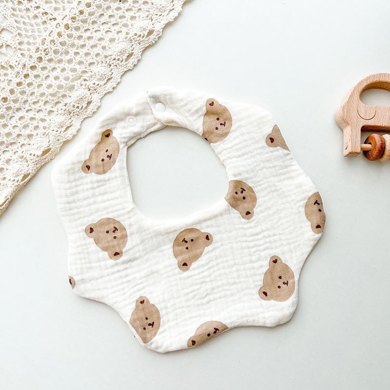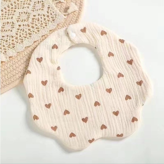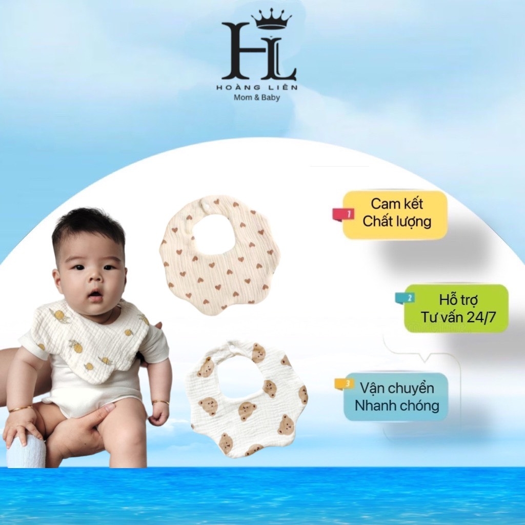 Yếm cổ tròn xoay 360 độ cho bé chất liệu muslin 100% cotton cao cấp Yếm cổ vải xô muslin cao cấp cho bé có nút điều chỉnh tiện lợi